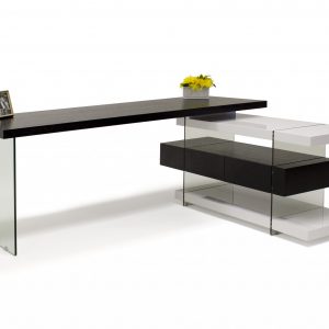 Wenge and white lacquer- L-shaped desks with 2 drawers and glass legs